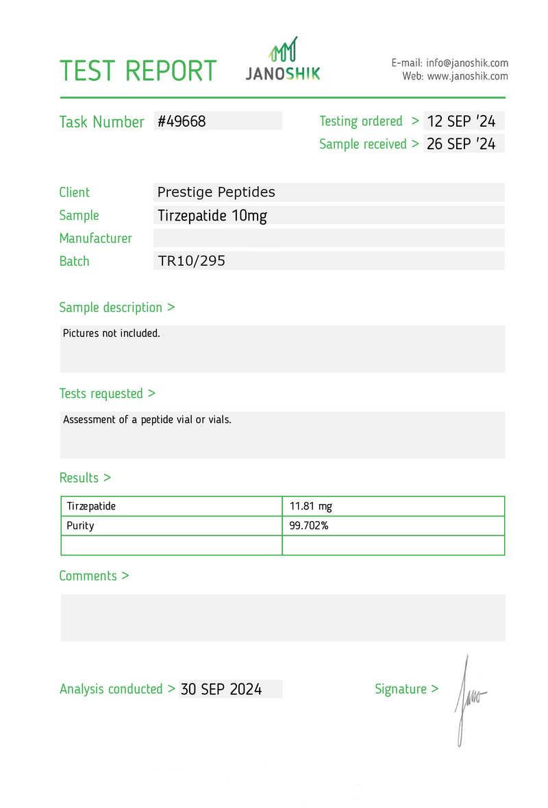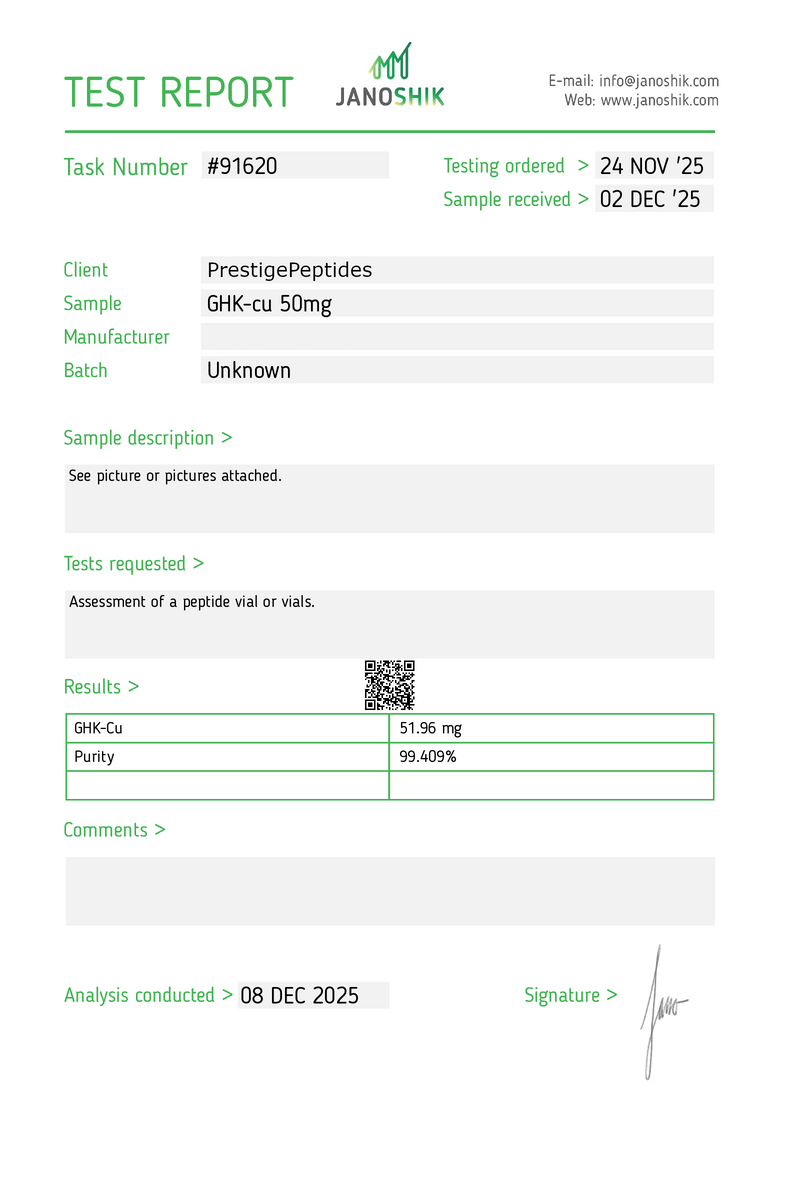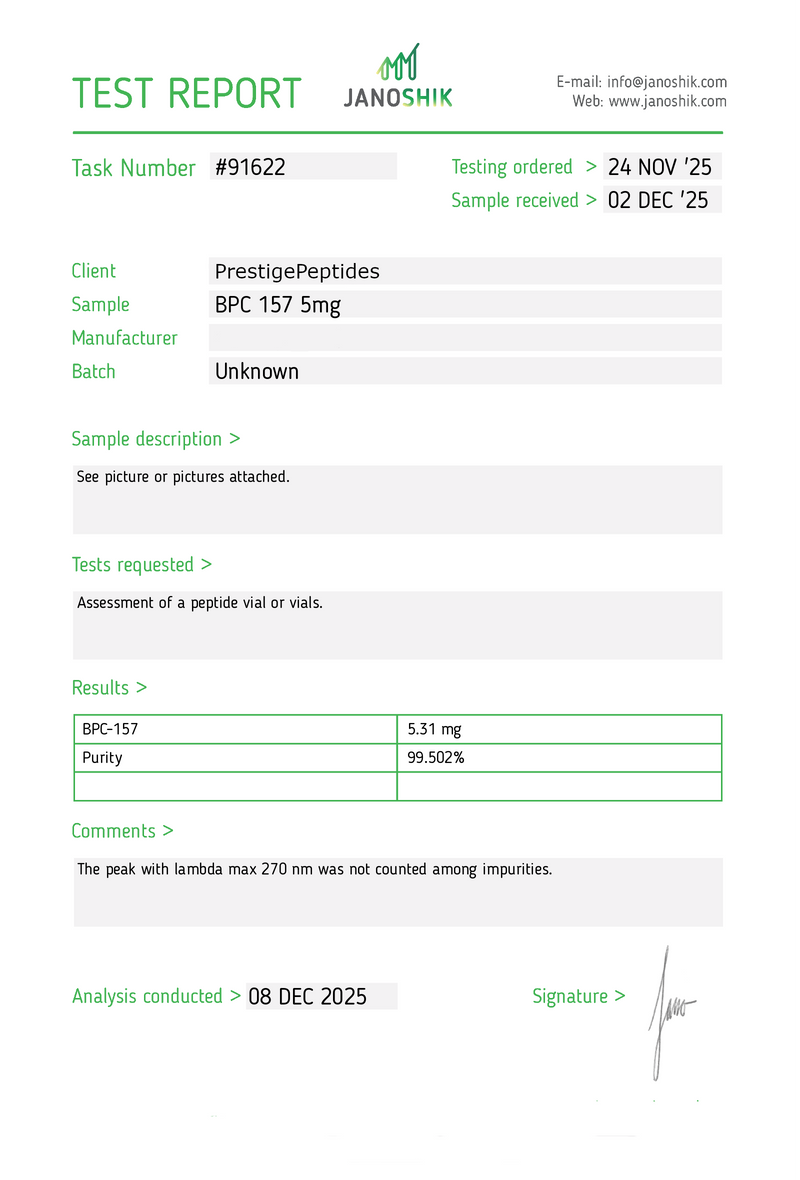 Independent third-party testing verifying purity and batch integrity.
